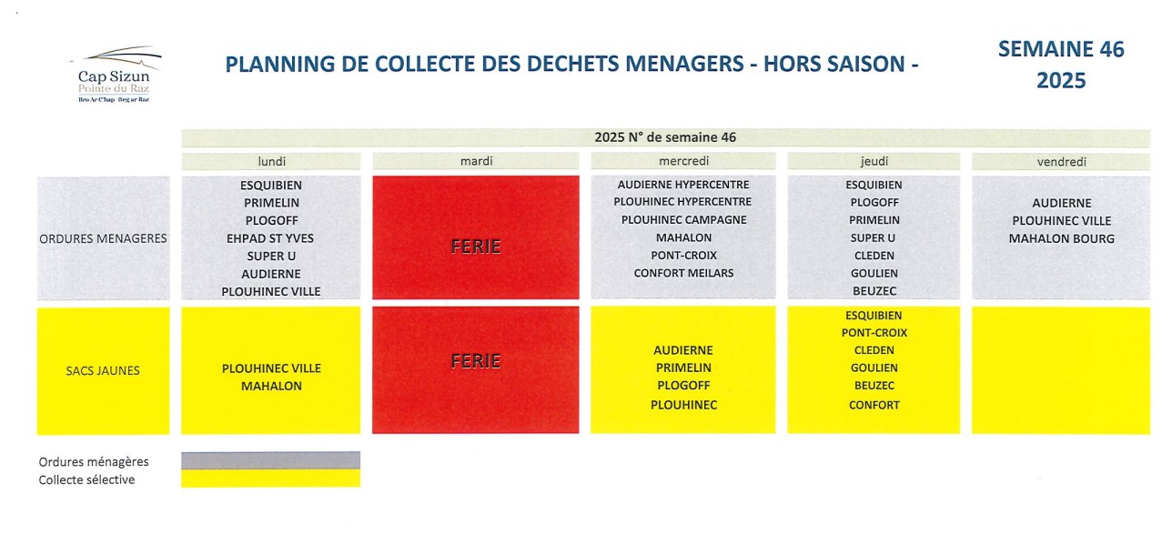 Planning de collecte des déchets de la semaine du 11 novembre 2025.