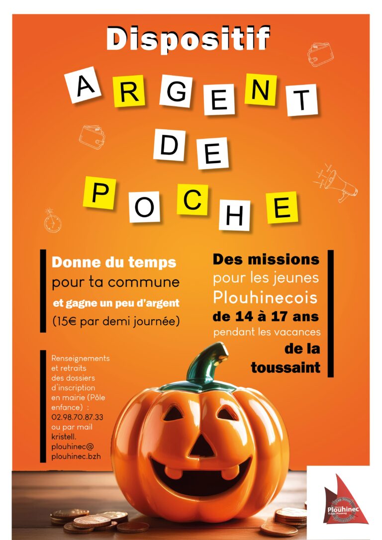 Le dispositif “Argent de poche” mis en place par la Mairie de Plouhinec depuis 2021 est un coup de pouce qui donne la possibilité aux jeunes âgés de 14 et 17 ans révolus d’effectuer des courtes missions de proximité participant à l’amélioration du cadre de vie de la commune.