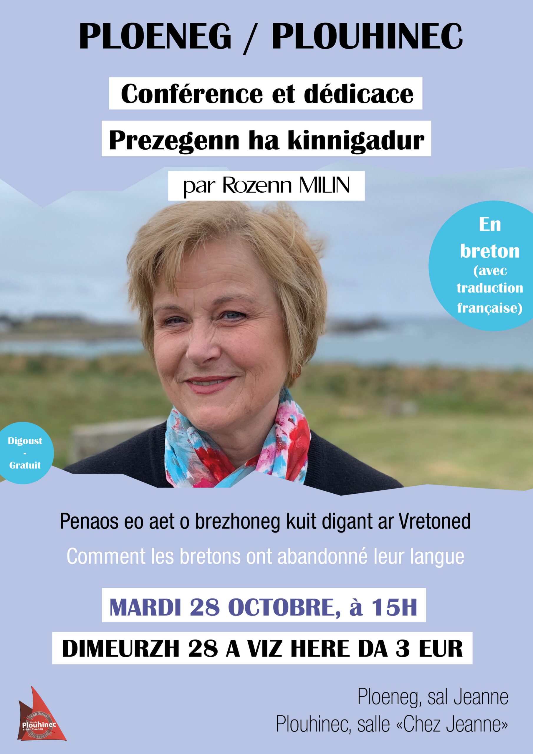 La conférence se déroulera en breton, avec traduction immédiate en français. Une séance de dédicace suivra la conférence.